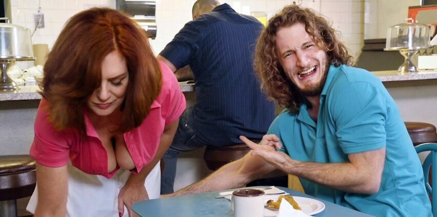 Brick Danger decided to select on a MOM waitress, who flashes her colossal juggs in order to get a bigger tip and a possible romance. She is smooth surprised when she niteces Brick's gigantic rod pulled out on the cook’s room table.