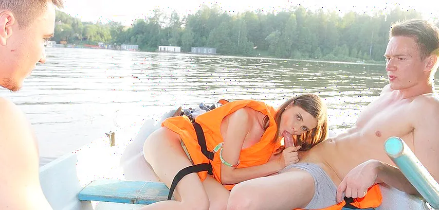 Skinny girl gets nailed in the boat in a MMF threesome