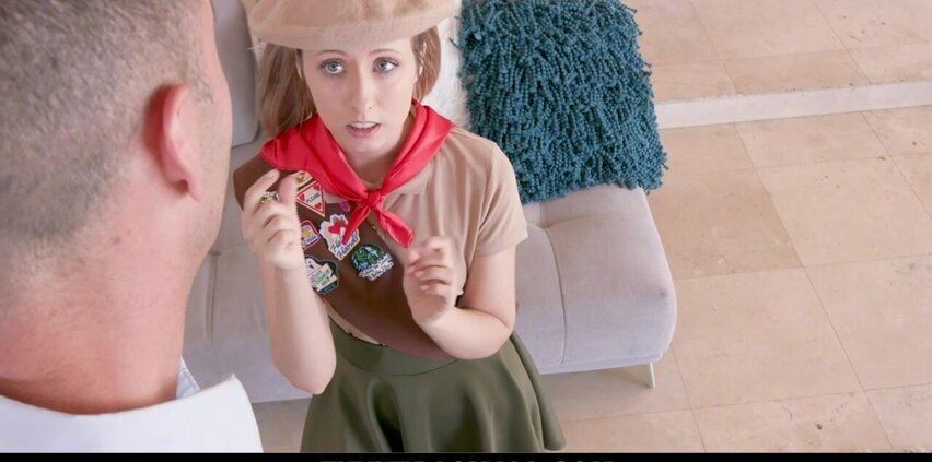 Daphne is shocked as he places her hand on his boner, but she soon gets a grip. She sucks his thick rod, flashing her beautiful blue eyes as she bobs on his prick. Then, she lets him slide inside her tight pussy, loving the way he feels as he goes deep inside of her. He even picks her up and slams her twat as she squeals. This little babe is a pro at making the sale, and she has really outdone herself this time. Do you think Daphne is a mogul in the making? Let us know in the comments!