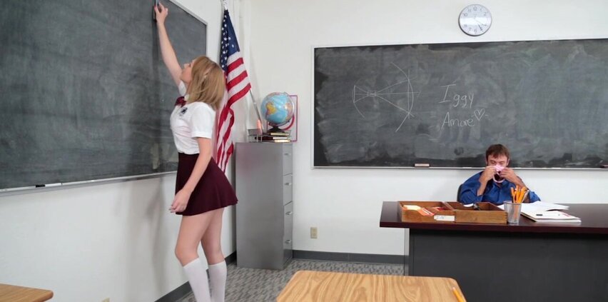 Enticing naughty teachers pet Iggy Amore gets her wet pussy drilled by her teachers cock inside the classroom.
