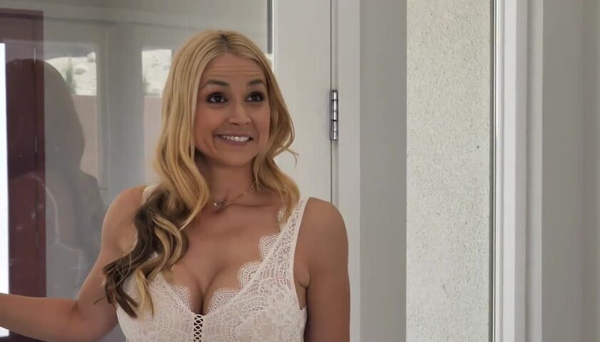 Actrice porno blonde aux gros seins baisée à l’extrême sur le canapé