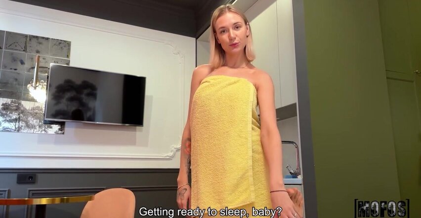 Little blonde, Melissa receiving a sensual massage after shower and getting rammed in CLOSE UP by XBoy.