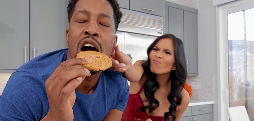 When mischievous Isiah Maxwell gets caught stealing cookies from his roommate Jada Kai, she gives him a spanking and then makes him suck her titties. Who needs cookies when you can devour Jada's cute kitty and bang it too?