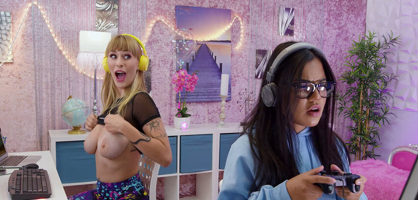Watch as hot streamer Angel Youngs gets naughty on camera, flashing her big boobs and playing with her kitty for her fans. But when her roommate's boyfriend joins in on the action, things really heat up! Don't miss out on this steamy behind-the-scenes footage filled with wild sex and juicy secrets!