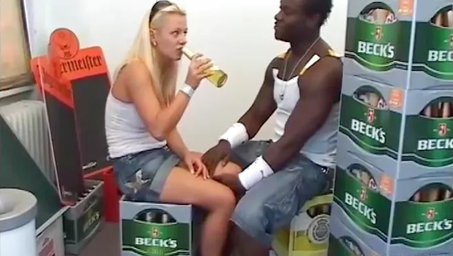 Skinny blonde lady gets rammed by a large ebony rod