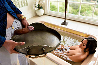 Bethany Benz has big beautiful eyes that draw you into her hot ebony body. She has an upscale pad complete with her own well groomed butler and she loves to lay naked in the tub and have him fix her drinks. She requests from him a stiff one, and he decides to switch it up this time and offer her some stiff cock. Before you know it he is fucking her in the tub!