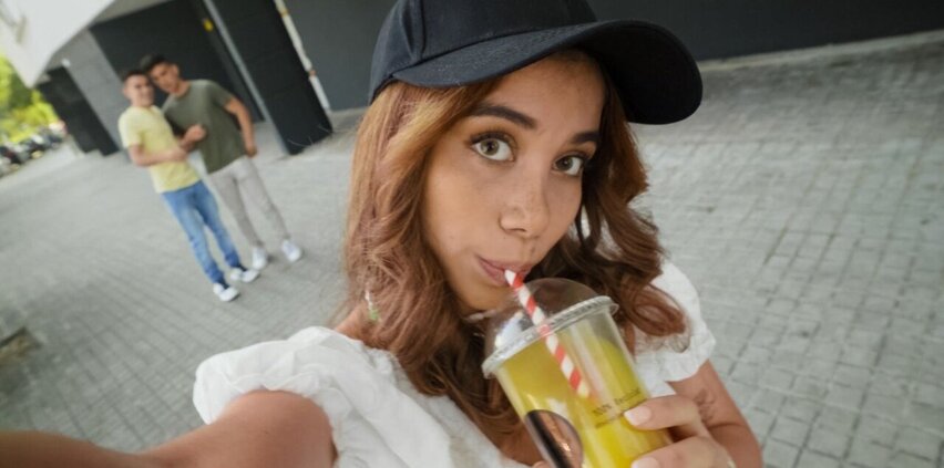 Jordi El Nino Polla has a substantial view of sexy influencer Marina Gold's butt as he sees her walking down the street taping herself. Jordi catcalls the hot lady and shamelessly grins at her when she confronts him, but it pays off because she brings him home to screw! Marina actions off her blow job skills, then lets him watch at her tight body before he screws her doggystyle. This tiny nympho demands that penis even harder, then takes Jordi's load all over her face!