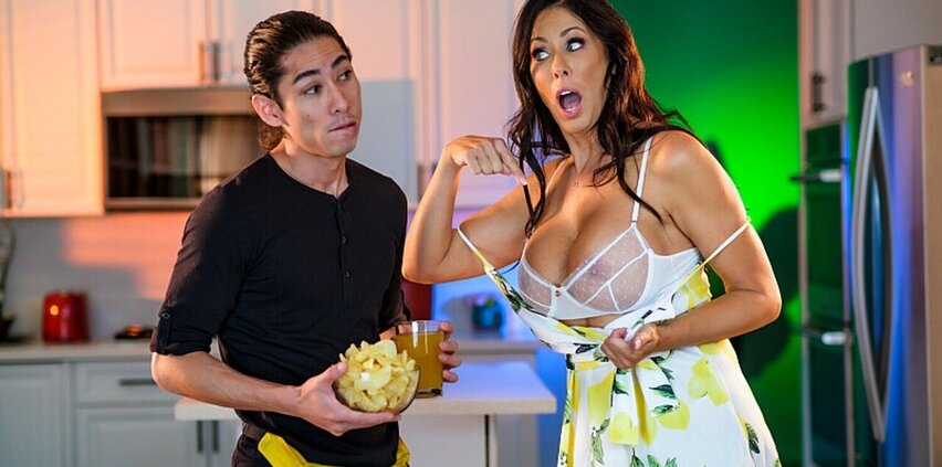 Reagan Foxx hired her son's friend, David, to assist her get in shape, but Reagan isn't sticking to her meal opinion and David catches her licking fries and other junk food. Reagan is truly sorry for falling off her nutrition opinion, but she thinks she has a way to assist burn off some of those calories she just ate. She has David whip his penis out and she works up a sweat seducing his wild stick.