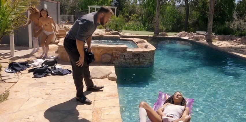 Kira is a hot tiny lady that gets caught swimming in a unknowns swimming pool. Unsatisfied with her attitude he decides to punish her by stuffing his titanic rough dick into her tight small gap. She is a joy to behold with her tight black body.