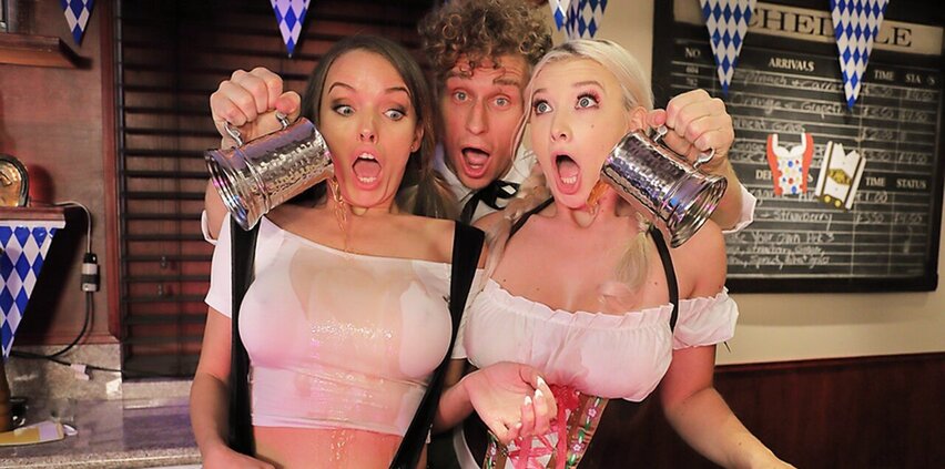 Two babes grab some wild sausage on Octoberfest
