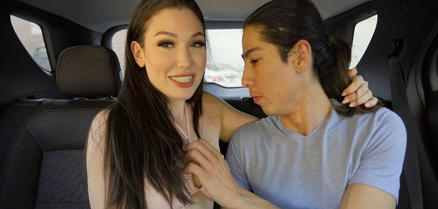 Watch pornstar David Lee pickup the gorgeous Lily Lou in the backseat, where she eagerly deepthroats and demands to get rammed harder after getting dumped by her boyfriend.