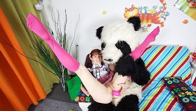 Unpacking a box hot sexy girl finds her favorite toy. It’s not big or too exciting but it definitely looks like it brought her a lot of unforgettable moments at sex toy parties… Unable to overcome temptation the girl starts masturbating and, just imagine, how shocked she gets when a huge panda toy comes to life and squeezes her! Very unexpected but so desired! The further action is a mix of sex toys porn and huge dildo action followed by deep pussy penetrations and lavish facial.