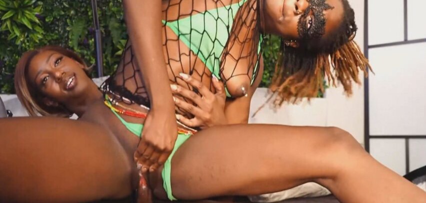 She looks at that pussy in front of her that makes her cock harder. The female bends over and she started riding that shecock. Shaved pussy babe got wet by this ebony shemale big hard cock and she got face fucked by this horny shemale. They really look sexy with that lingeries they are wearing. A horny tranny gets a nice sucking from her girlfriend. In the latter part of the video, this ebony babe enjoys sucking and stroking that cock. Catch how this couple shemale and babe please each other and fuck her pussy and suck shemale big hard cock!