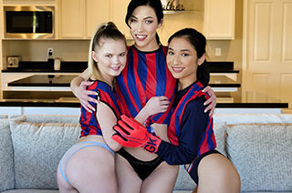 Coach Bobby treats teammates Avery Black, Coco Lovelock and Diana Grace to some pizza after their soccer practice, but when he’s getting some rest on the couch, the girls come up with a devious plan. Coach Bobby is startled to find, not only himself, but the three girls naked and on top of him. He ends up giving in to temptation and rewards the girls for being such good teammates, both in and out of the field!