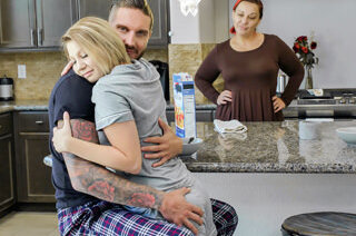 As soon as her concerned mother steps out, Cara's stepdad slides his thick cock in her tight pussy for a deeply penetrating dicking. Then, he drops a steamy load all over her perky titties just as Caras mom walks back inside. They definitely have some explaining to do!